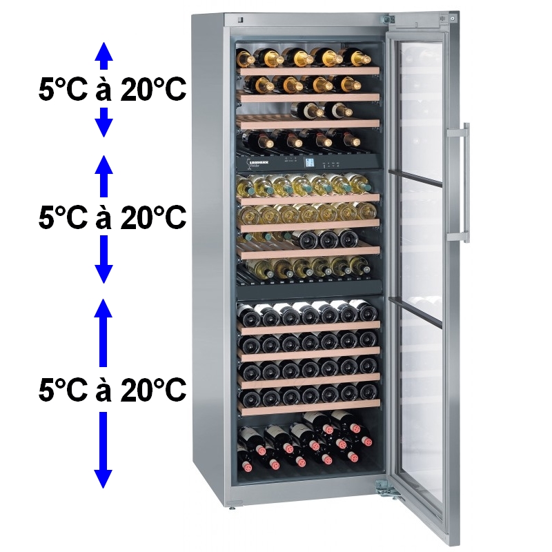 1 à 2 zones de températures différentes réglables indépendamment de 5 à 20°C